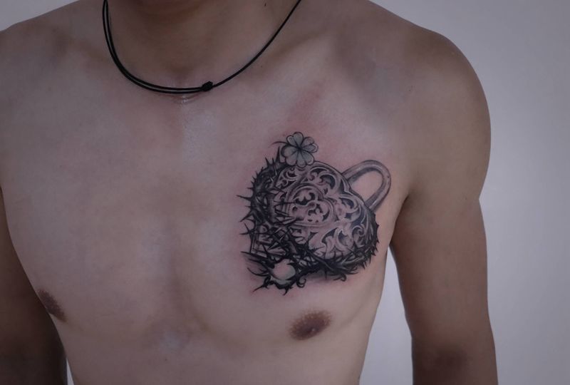 当前位置: 首页 >广东省深圳市纹身店-CDtattoo纹身图案>写实锁纹身图片_胸部欧美写实荆棘 锁写实纹身图案
