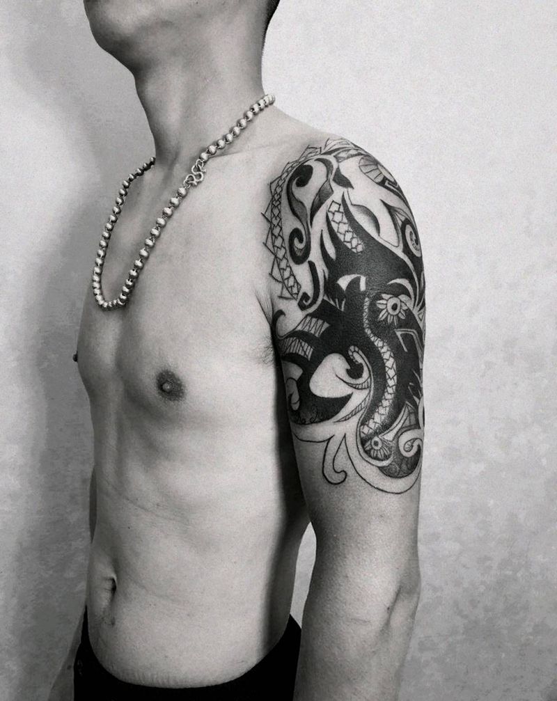 • 纹身吧推荐的披肩图腾半胛纹身图案作品展示