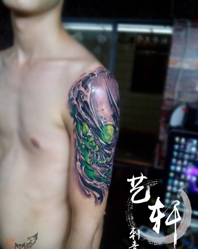 当前位置: 首页 >广东省深圳市纹身店-深圳南山艺轩纹身工作室纹身图案>欧美大臂骷髅纹身图片_欧美手臂鬼神纹身图案