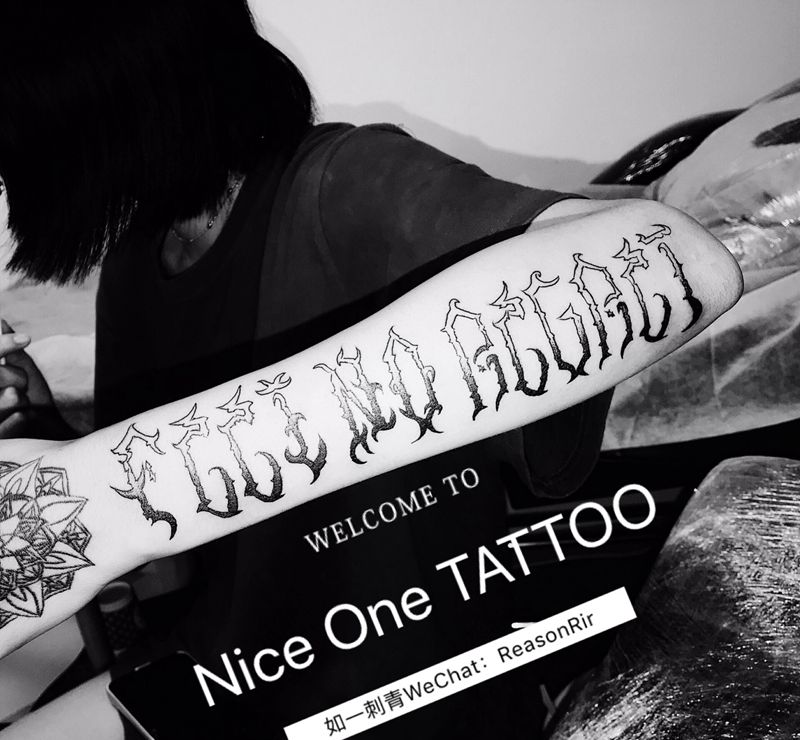 当前位置: 首页 >广东省深圳市纹身店-NiceOne TATTOO纹身图案>feel no regret纹身图片_手臂花体字纹身图案