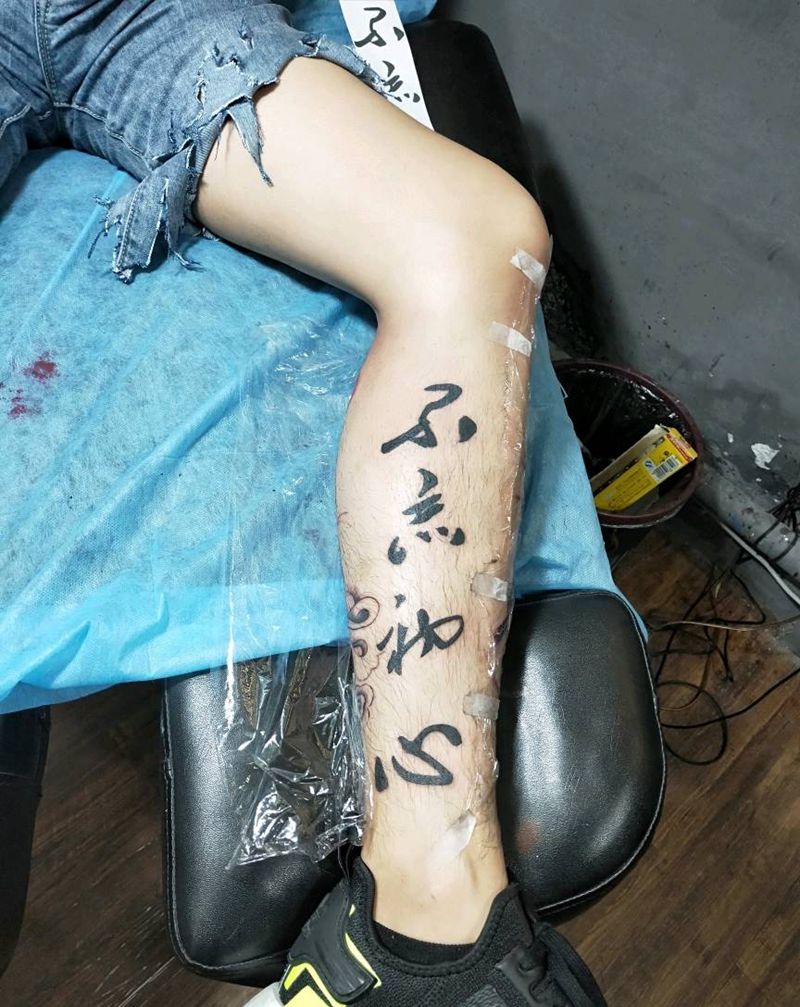 • T网红王老大花腿龙纹身图片_腿部新传统纹身图案