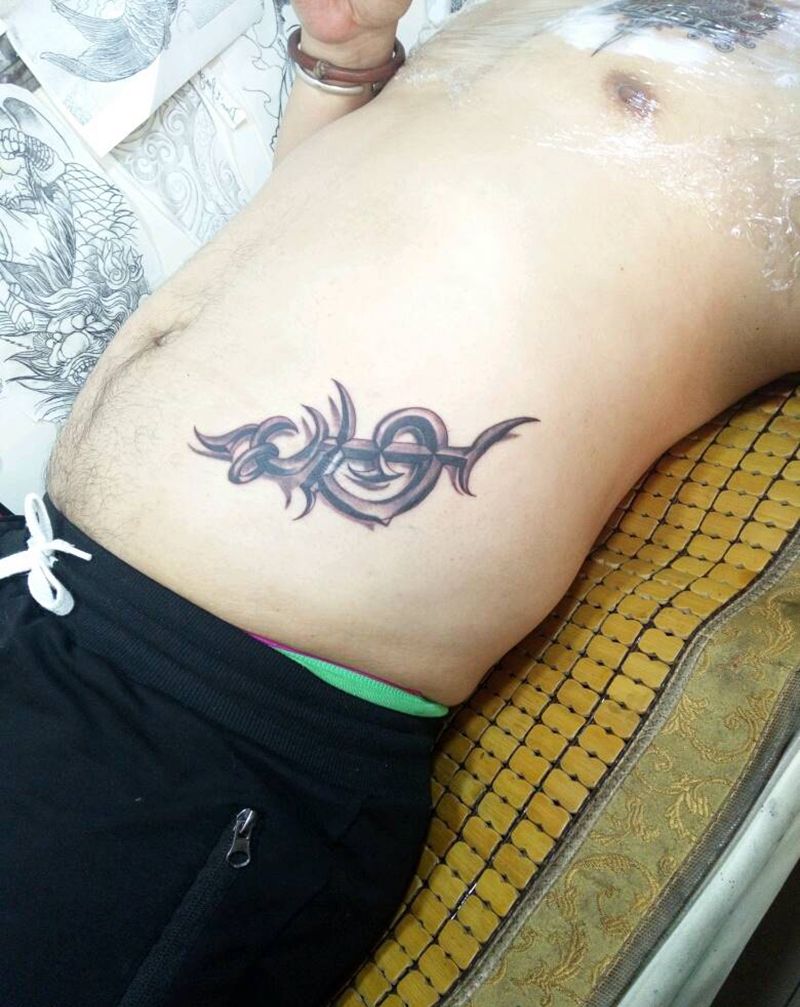 • T关于私处得爱!纹身图片_成品腹部清新字符图腾纹身图案