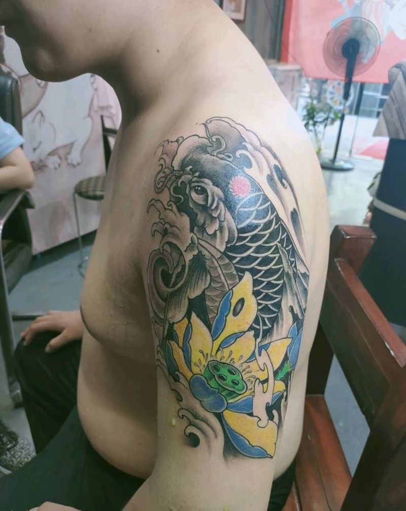 男士手臂鲤鱼纹身图片_手臂新传统纹身图案
