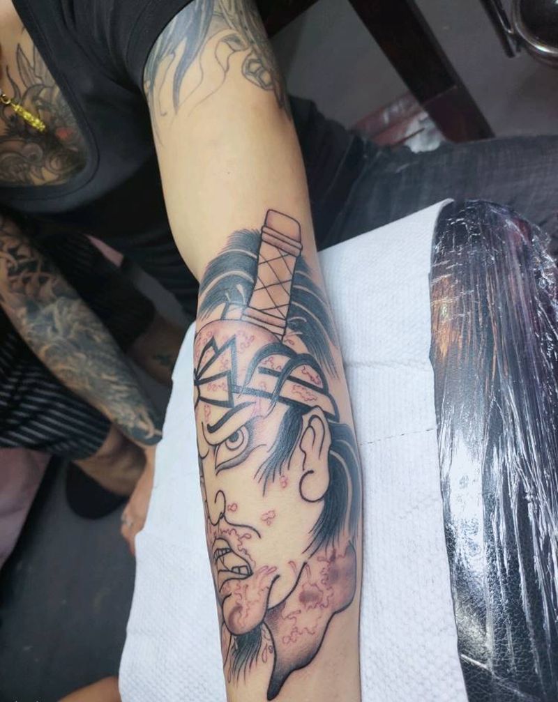 日式生首纹身作品纹身图片_手臂手部老传统纹身图案