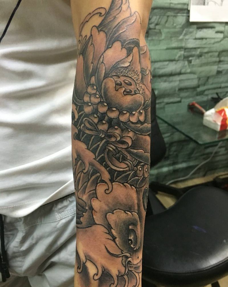 小鱼儿纹身图片_成品手臂传统纹身图案