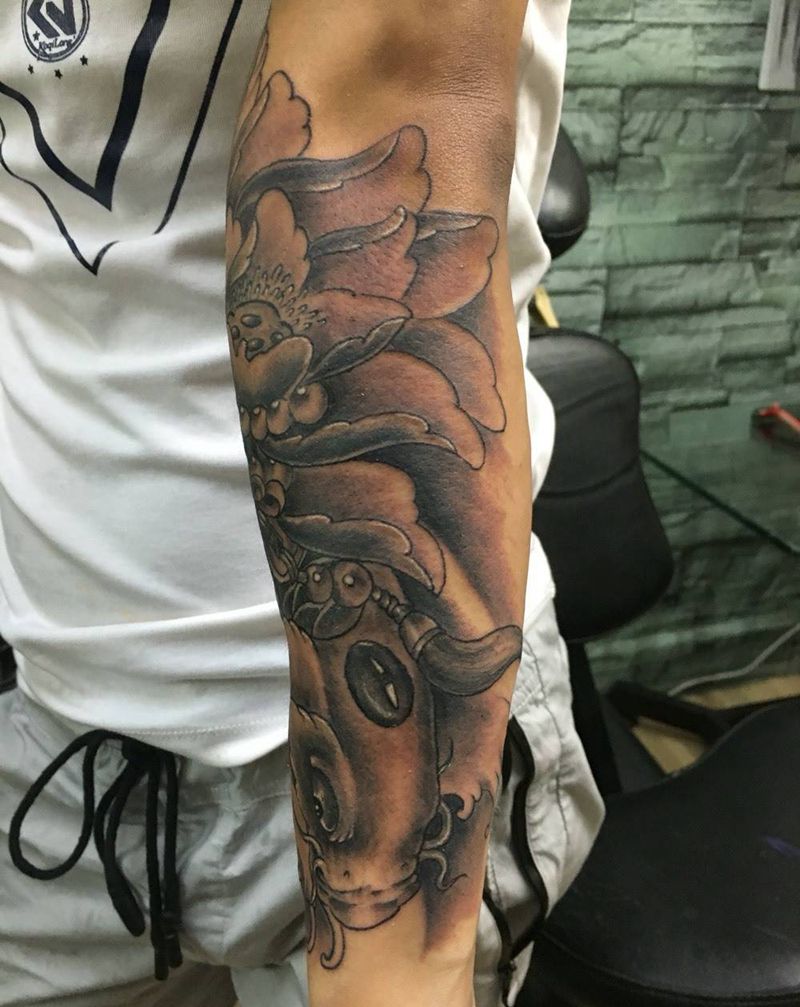 小鱼儿纹身图片_成品手臂传统纹身图案