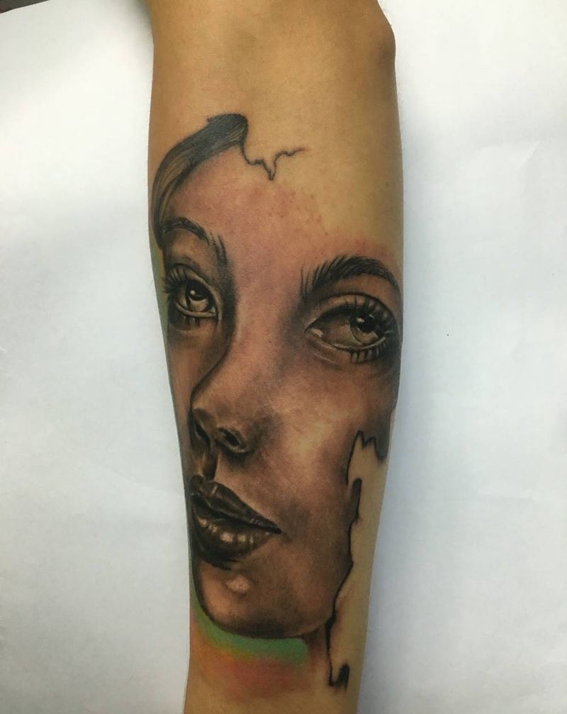 当前位置: 首页 >广东省深圳市纹身店-名海刺青纹身图案>小臂美女纹身图片_成品手臂肖像人物纹身图案
