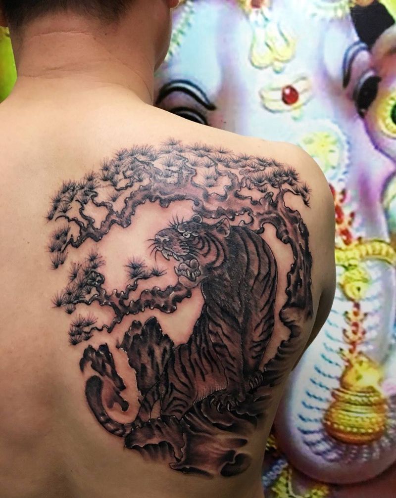 当前位置: 首页 >广东省深圳市纹身店-名海刺青纹身图案>虎纹身图片_成品背部传统动物纹身图案