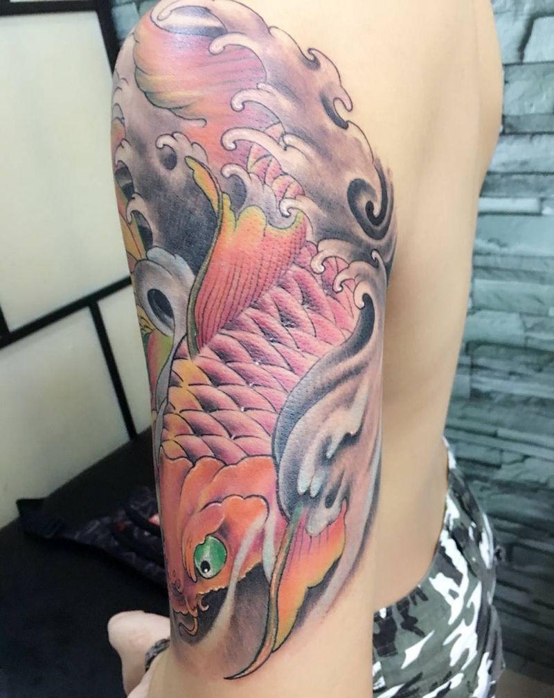 当前位置: 首页 >广东省深圳市纹身店-名海刺青纹身图案>鱼儿纹身图片_成品手臂传统纹身图案