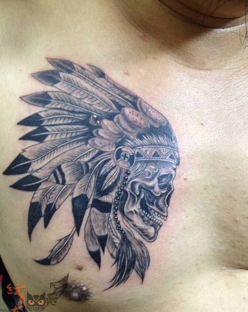当前位置: 首页 >广东省深圳市纹身店-深圳鬼舞刺青工作室纹身图案>印第安骷髅纹身图片