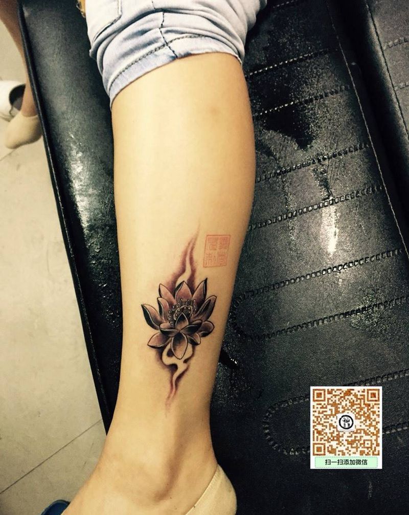 当前位置: 首页 >广东省深圳市纹身店-深圳鬼舞刺青工作室纹身图案>小腿荷花纹身图片