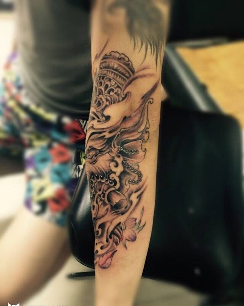 当前位置: 首页 >广东省深圳市纹身店-深圳鬼舞刺青工作室纹身图案>小臂象神纹身图片