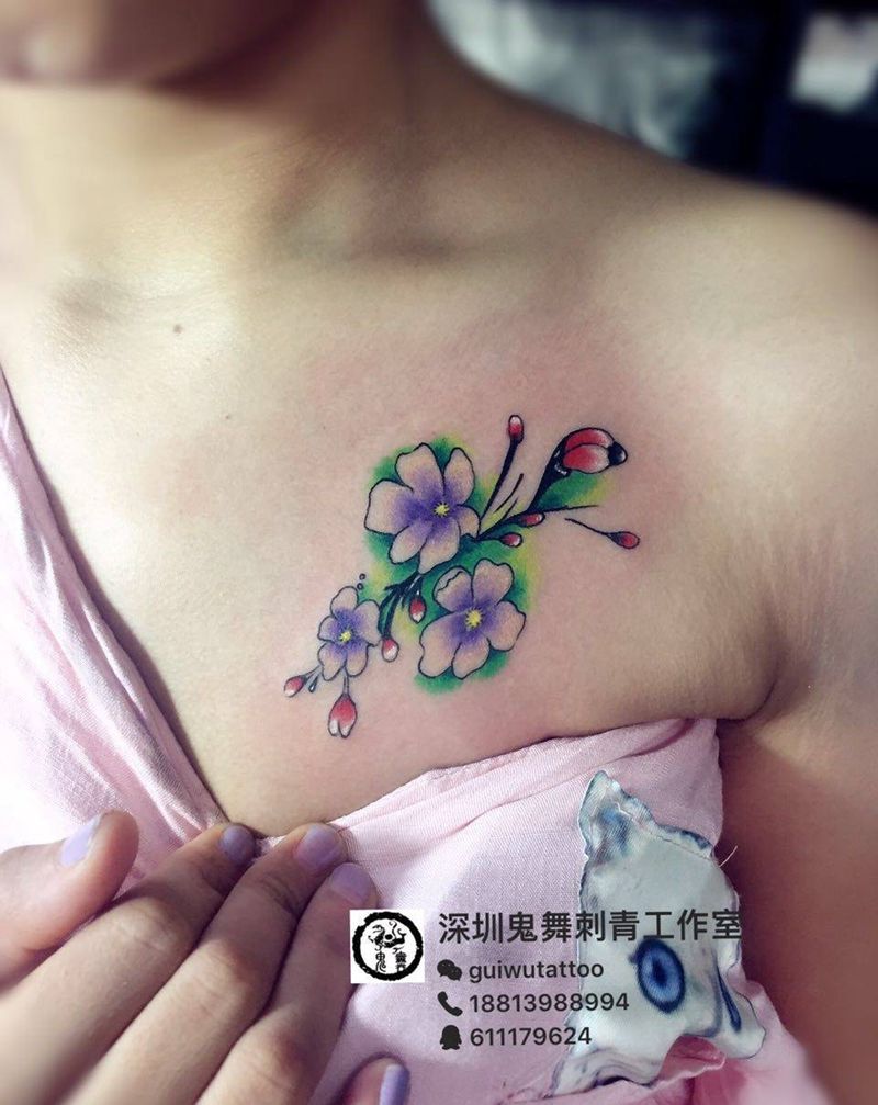 前胸小花纹身图片