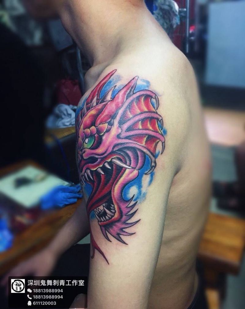 当前位置: 首页 >广东省深圳市纹身店-深圳鬼舞刺青工作室纹身图案>西方龙头纹身图片