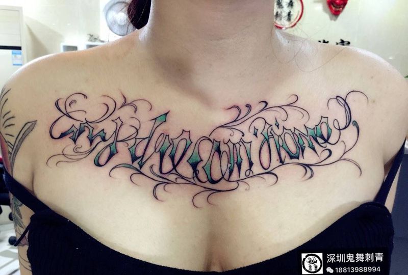 • T关于私处得爱!纹身图片_成品腹部清新字符图腾纹身图案
