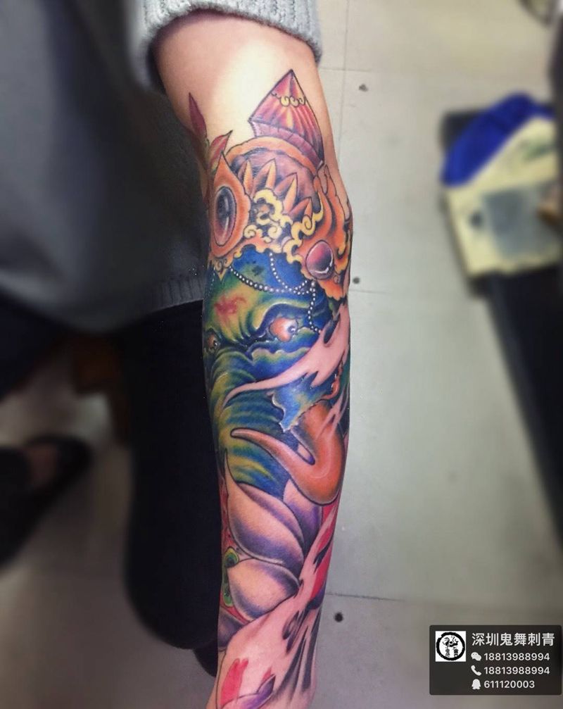 当前位置: 首页 >广东省深圳市纹身店-深圳鬼舞刺青工作室纹身图案>包小臂象神纹身图片