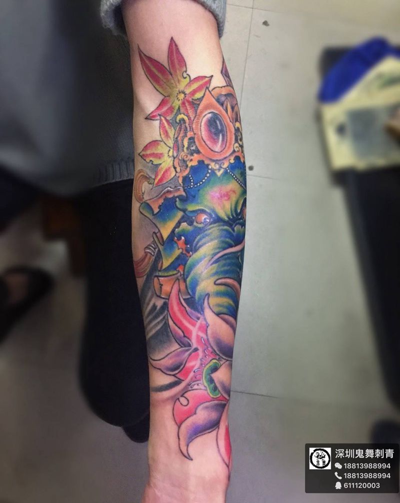 当前位置: 首页 >广东省深圳市纹身店-深圳鬼舞刺青工作室纹身图案>包小臂象神纹身图片