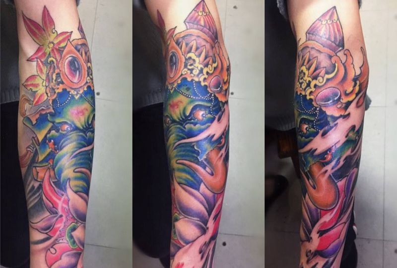 当前位置: 首页 >广东省深圳市纹身店-深圳鬼舞刺青工作室纹身图案>包小臂象神纹身图片
