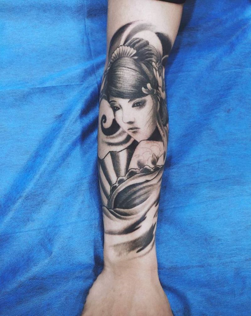 当前位置: 首页 >广东省深圳市纹身店-深圳玉锦刺青纹身图案>艺伎纹身图片_手臂新传统纹身图案