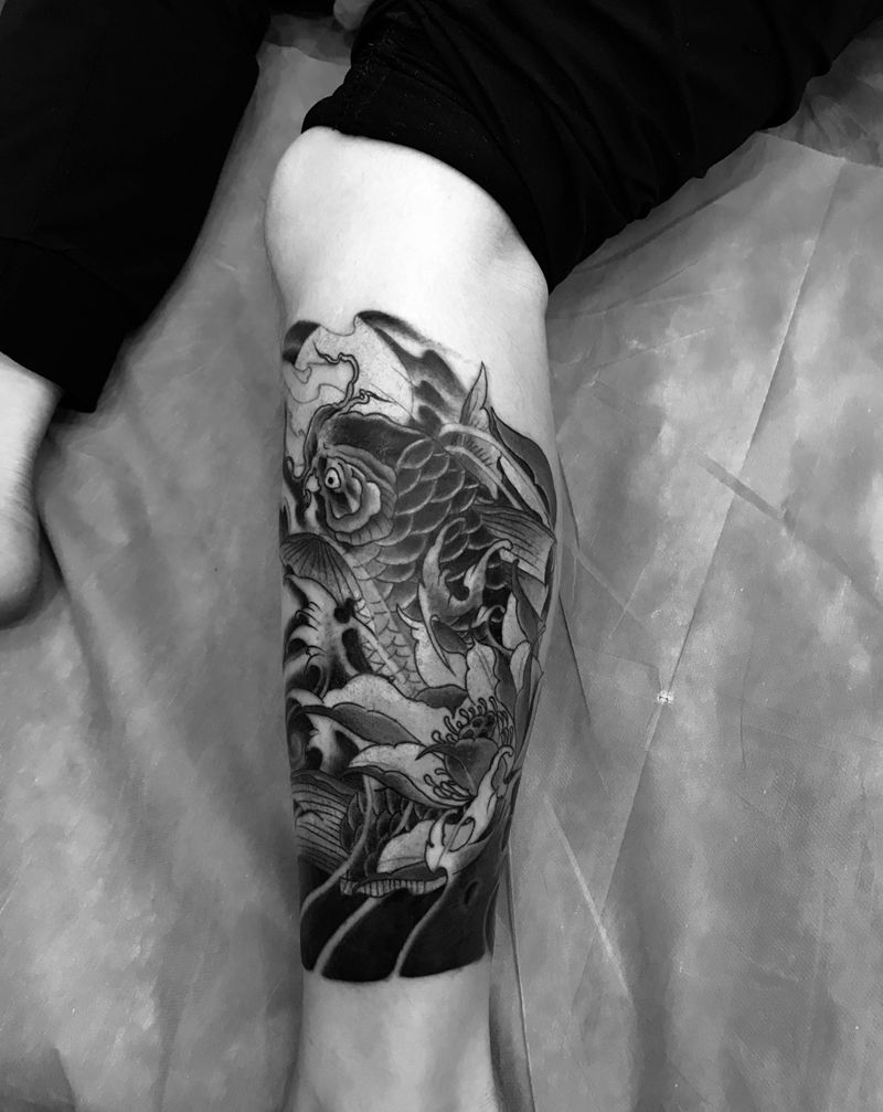 当前位置: 首页 >广东省深圳市纹身店-深圳玉锦刺青纹身图案>小腿锦鲤纹身图片_腿部纹身图案