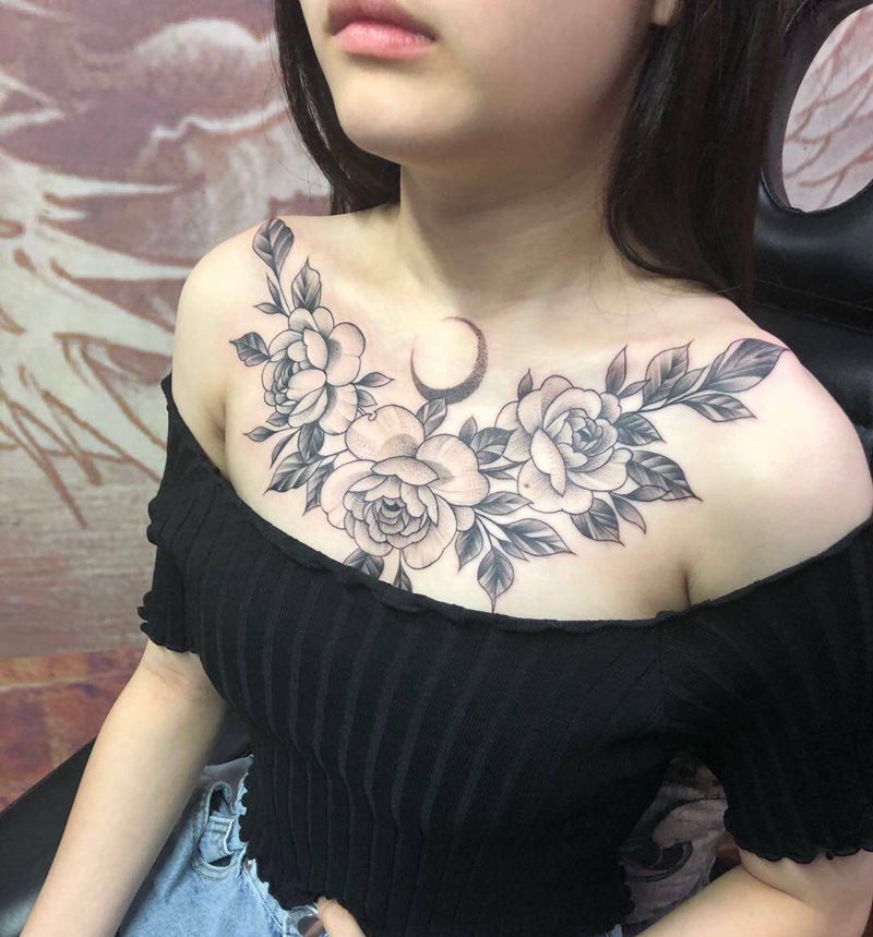 • 女性大花胸纹身_43张霸气漂亮的女性大花胸纹身图案作品