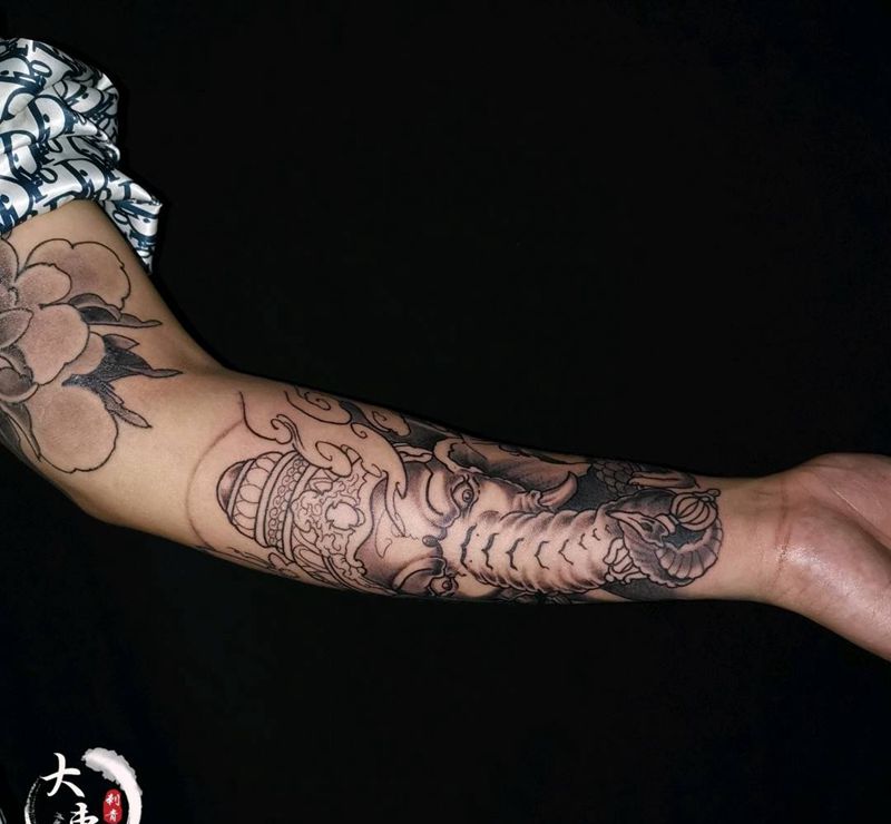 当前位置: 首页 >广东省深圳市纹身店-如是刺青纹身图案>象神纹身图片_手臂新传统纹身图案
