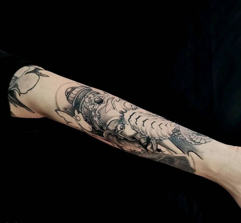 当前位置: 首页 >广东省深圳市纹身店-如是刺青纹身图案>象神完纹身图片_手臂新传统纹身图案