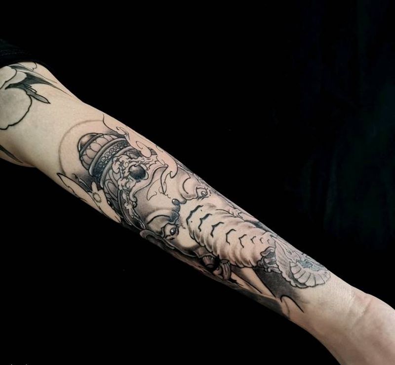 当前位置: 首页 >广东省深圳市纹身店-如是刺青纹身图案>象神完纹身图片_手臂新传统纹身图案