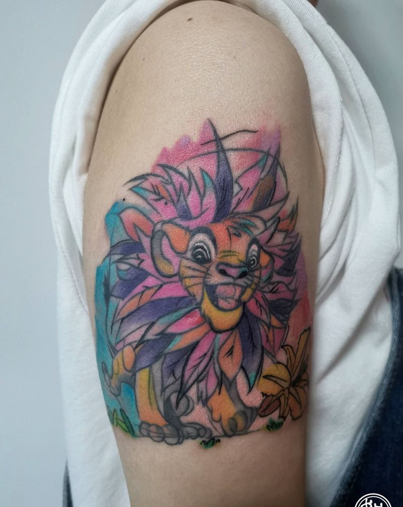 添加修改小狮子纹身图片_手臂水彩纹身图案