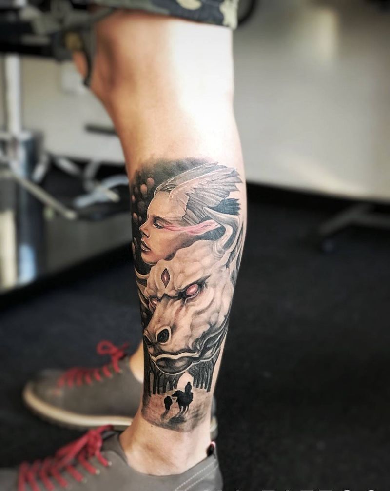 回忆映像纹身图片_腿部欧美写实纹身图案