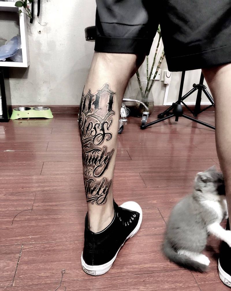 • T网红王老大花腿龙纹身图片_腿部新传统纹身图案