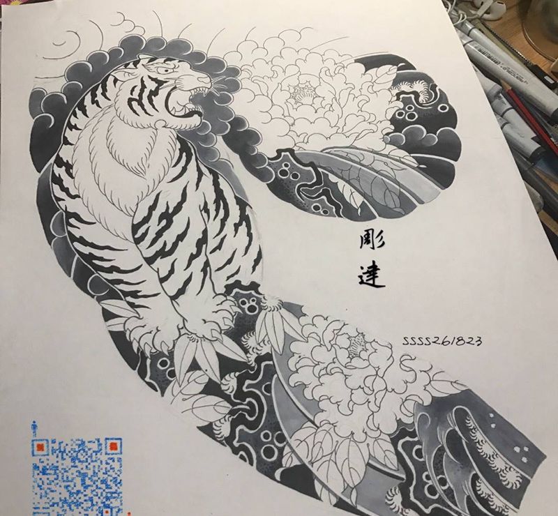 • H老虎纹身手稿图案大全