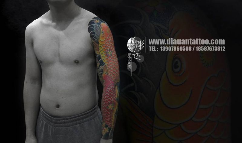 当前位置: 首页 >广东省深圳市纹身店-深圳彫安刺青纹身图案>鯉魚 傳統花臂纹身图片
