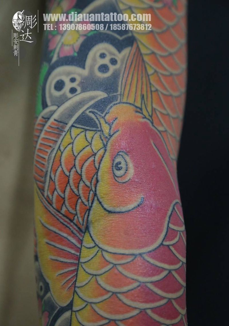 当前位置: 首页 >广东省深圳市纹身店-深圳彫安刺青纹身图案>鯉魚 傳統花臂纹身图片