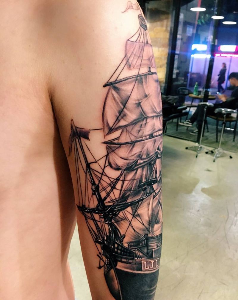 • 纹身吧推荐的披肩图腾半胛纹身图案作品展示