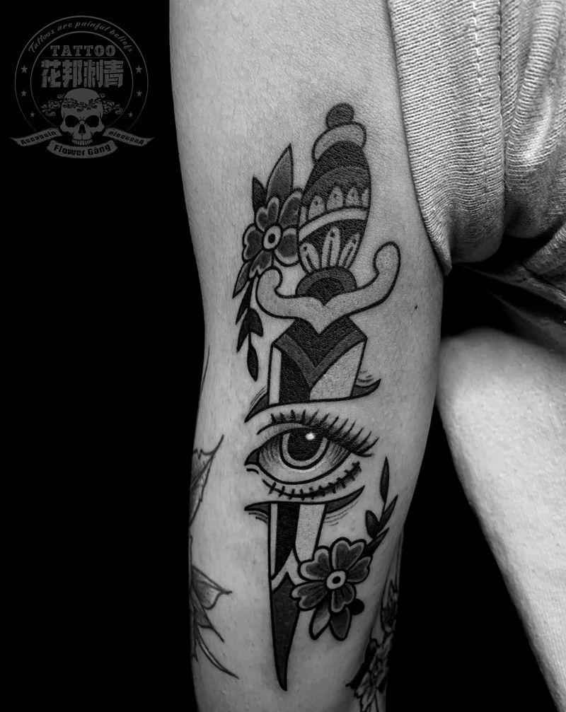 当前位置: 首页 >广东省深圳市纹身店-花邦刺青馆纹身图案>眼之匕首纹身图片_手臂Old School匕首眼睛纹身图案