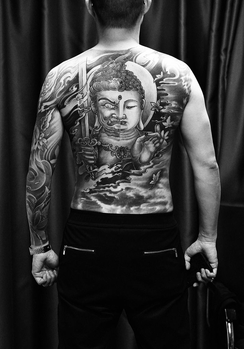 【善恶】纹身图片_背部新传统不动明王佛纹身图案