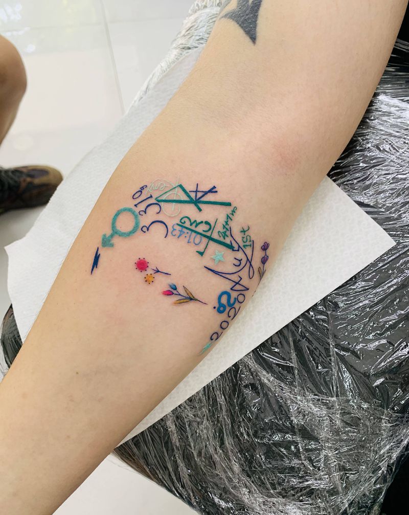• T家庭图,一家四口生日纪念!纹身图片_手臂纹身图案