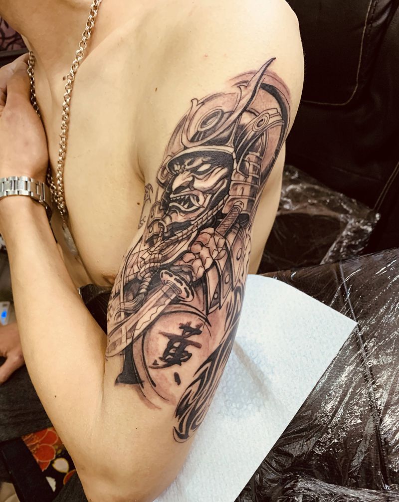 当前位置: 首页 >广东省珠海市纹身店-珠海欧阳刺青纹身图案>鬼武士纹身图片_手臂纹身图案