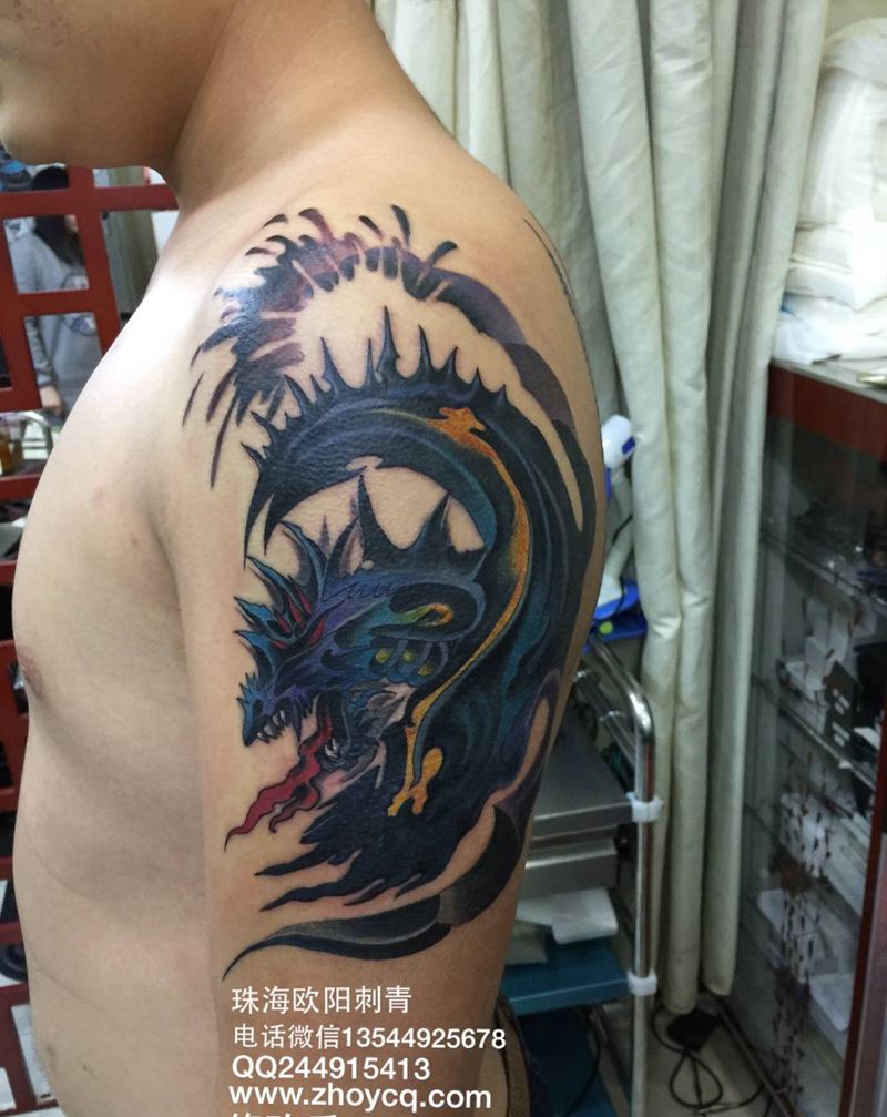 • 纹身吧推荐的披肩图腾半胛纹身图案作品展示