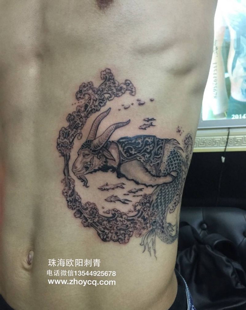 当前位置: 首页 >广东省珠海市纹身店-珠海欧阳刺青纹身图案>摩羯座纹身图片_成品腰部写实动物纹身图案