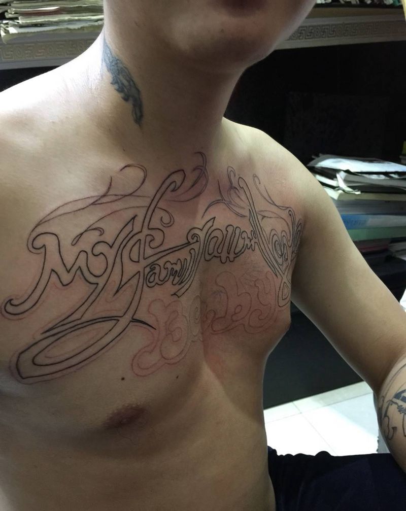 家人我全部的爱纹身图片_胸部欧美纹身图案