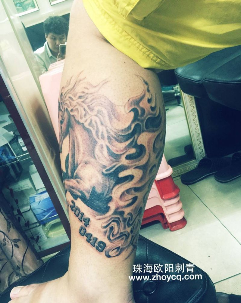 • T网红王老大花腿龙纹身图片_腿部新传统纹身图案