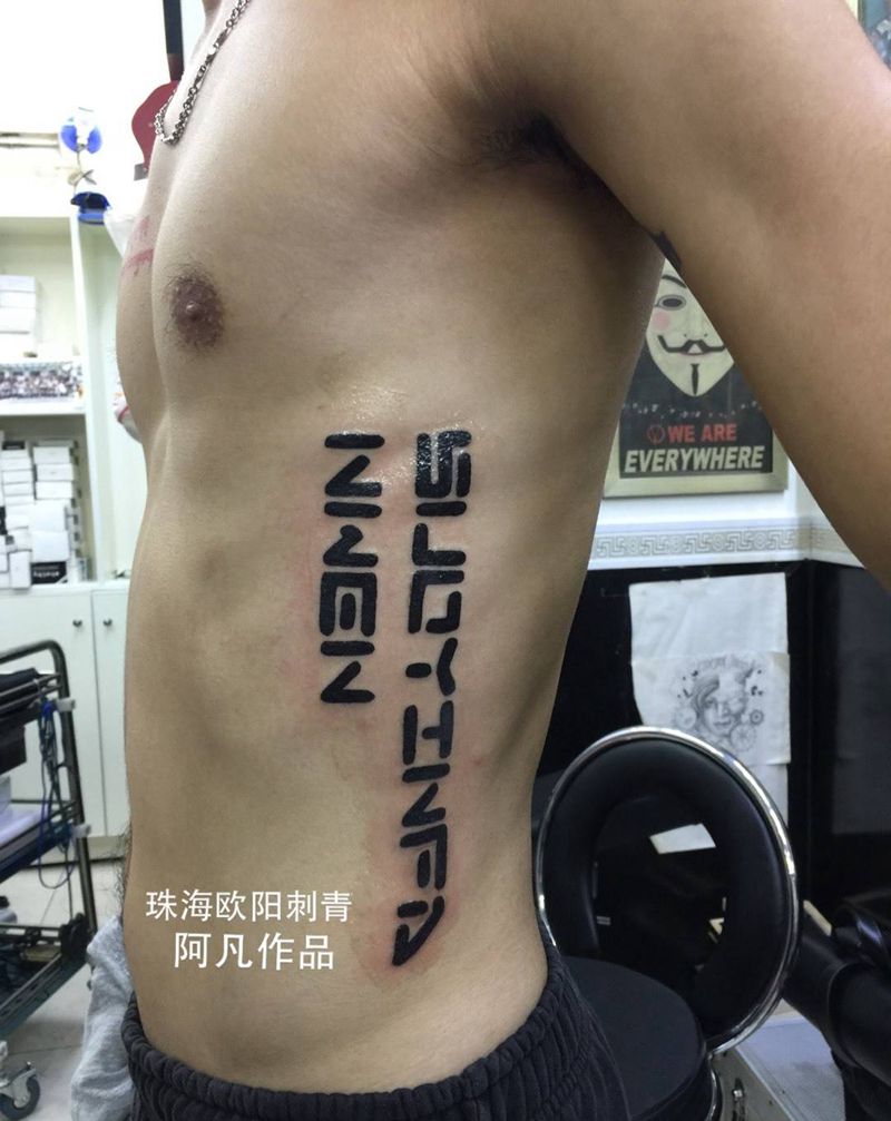 • T关于私处得爱!纹身图片_成品腹部清新字符图腾纹身图案