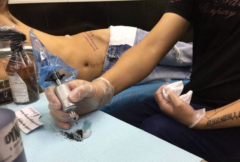 • T关于私处得爱!纹身图片_成品腹部清新字符图腾纹身图案