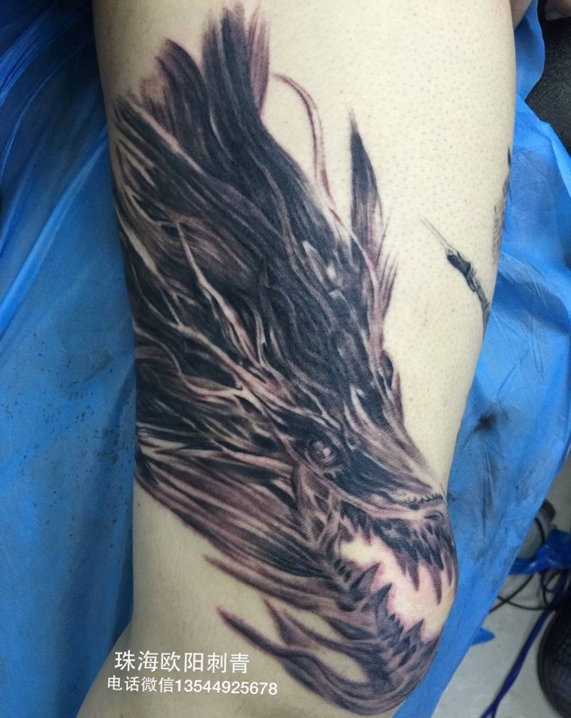 • T网红王老大花腿龙纹身图片_腿部新传统纹身图案