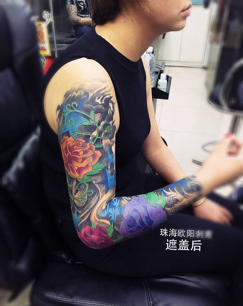 当前位置: 首页 >广东省珠海市纹身店-珠海欧阳刺青纹身图案>花臂遮盖纹身图片
