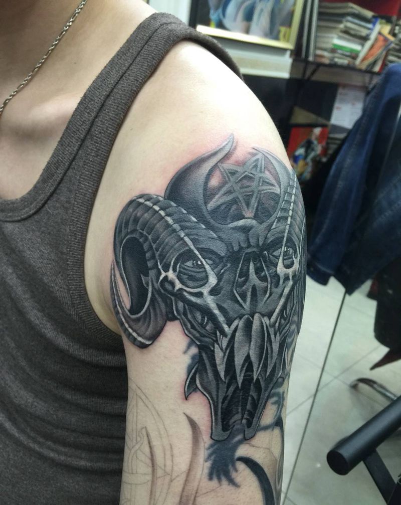 • 纹身吧推荐的披肩图腾半胛纹身图案作品展示