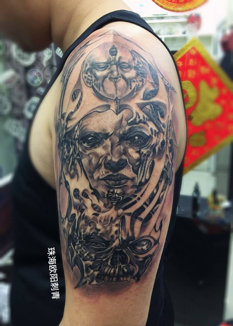黑灰满背纹身图案