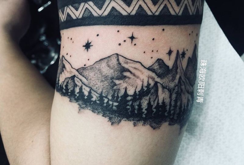 当前位置: 首页 >广东省珠海市纹身店-珠海欧阳刺青纹身图案>臂环 星空 山景 风景纹身图片